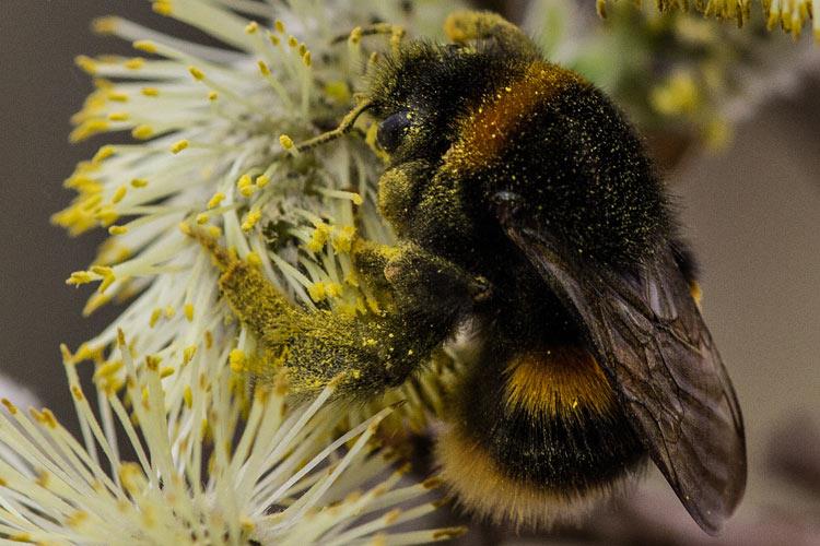 Bumblebees belong to the order ‘Hymenoptera’ which includes Bees, Wasps, Ants, Sawflies. There are distinct differences between the appearance and lives of bumblebees, honeybees and solitary bees. Bumblebees are larger and hairier than honeybees and solitary bees, which makes them perfectly suited for colder climates. Bumblebee nests are small and they do not store large quantities of honey, so they are more sensitive to the availability of pollen and nectar-rich flowers to feed on. Bumblebees do not swarm and are not aggressive. Only female bumblebees can sting and they will only do so if they feel very threatened.