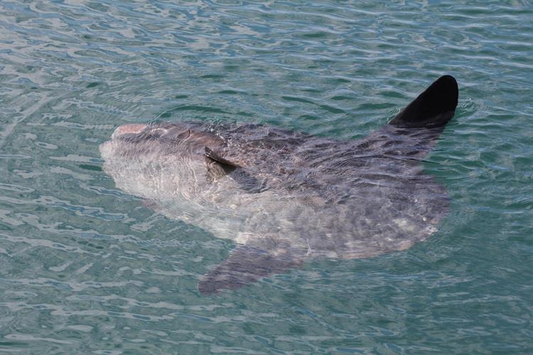 Some fish species are migrants to Welsh waters, seen especially in south and West Wales, these include iconic species such as the Ocean Sunfish Mola mola, the heaviest bony fish in the world. They are usually encountered whilst drifting on the surface, with their dorsal fin visible flopping side to side.