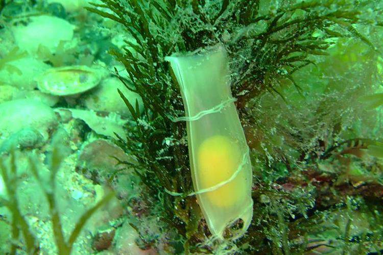 Marine fish exhibit a huge variety of body diversity, from slender elongated pipe fish and eels to the distinctive flattened shape of the bony flatfish (e.g. plaice) and skates / rays. There is an equally vast array of life history behaviours and reproduction strategies within marine fish. Benthic fish, found on the seabed, can be relatively sedentary; the cling fish has a modified sucker allowing it to stick to the underside of rocks, the male will stay under a rock to guard their eggs. This contrasts with pelagic species such as herring and sandeel, which shoal in large numbers and spawn over huge areas of the seabed. Skates and rays are famously known for producing intricate ‘mermaids’ purses’, these are tough egg cases attached to the seabed where the embryos of the young develop. The empty cases can often be found washed up on beaches. The iconic long snouted seahorse Hippocampus guttulatus is rare in Wales. Males famously brood the eggs in their ventral pouch, and they have the ability to rapidly transform colour patterns to blend with their immediate surroundings.