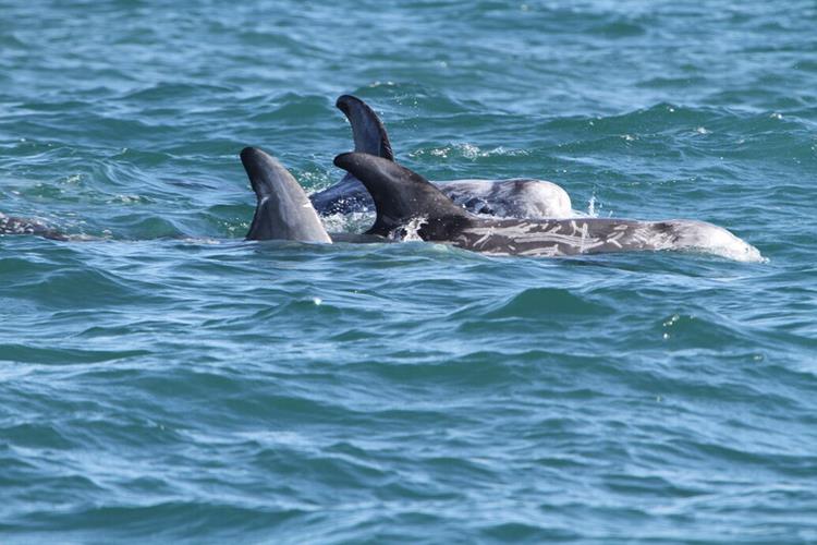 Mae dolffin Risso Grampus griseus yn ddolffin mawr arall sy’n plymio dwfn, sy'n aml â chreithiau nodedig. Mae'r rhywogaeth hon i’w gweld yn dymhorol yn yr haf o amgylch Ynys Enlli, oddi ar Benrhyn Llŷn, a gellir ei gweld hefyd oddi ar ogledd Ynys Môn; gellir gweld y dolffiniaid yn agos i'r lan a chredir eu bod yn bwydo ar fôr-lewys.