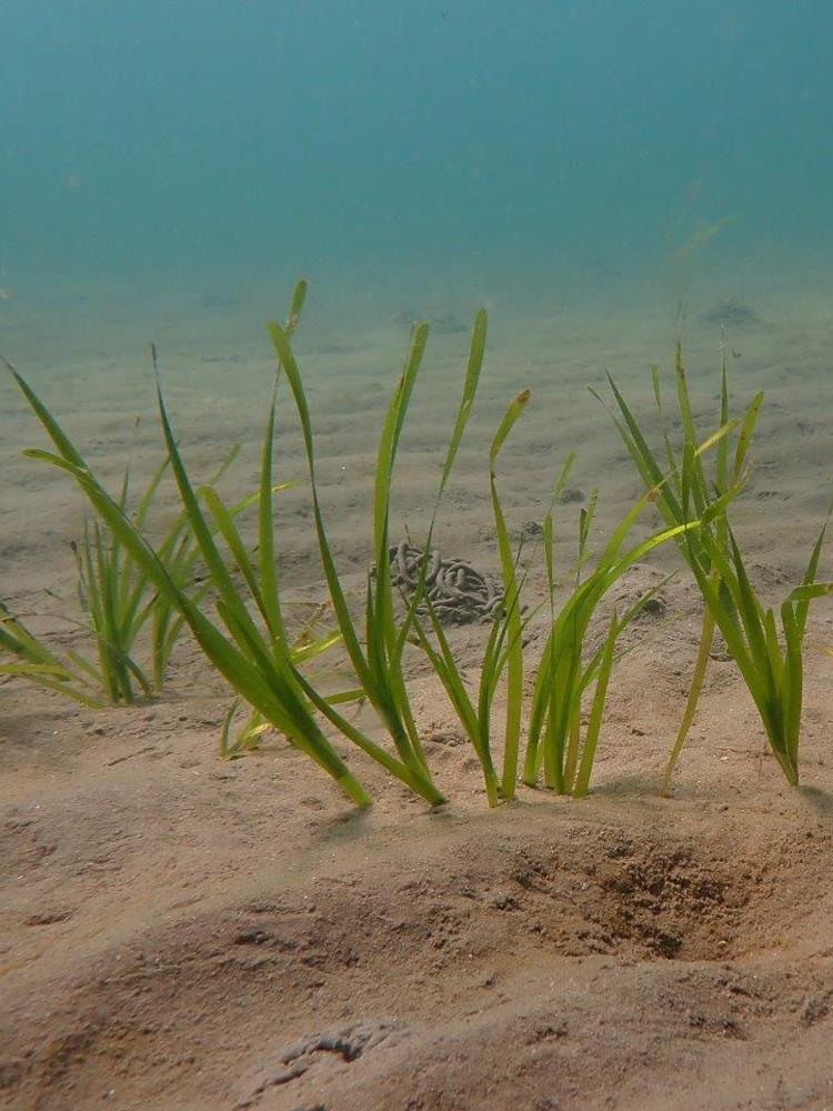 Seagrasses are the only flowering plants (angiosperms) capable of living in seawater. Like terrestrial plants, seagrasses have roots, stems and leaves and reproduce by producing flowers and seeds. They have stems (rhizomes) that creep horizontally below the sediment surface and then shoot up above the surface forming, often dense, underwater ‘meadows’. These biogenic habitats are found in sheltered, sediment areas and can cover large areas and play an important role in supporting a variety of other flora and fauna.